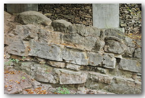 Nahansicht des mächtigen Stromatolithen und seiner Überdeckung durch Oolith.