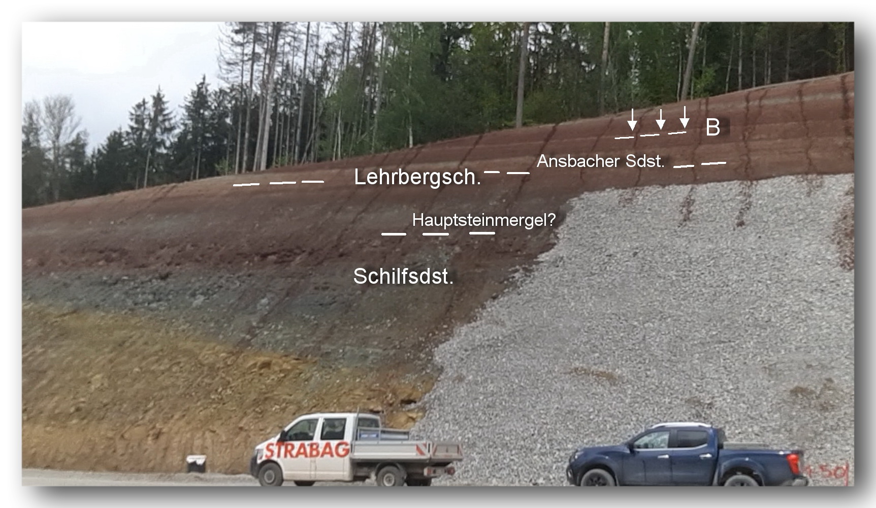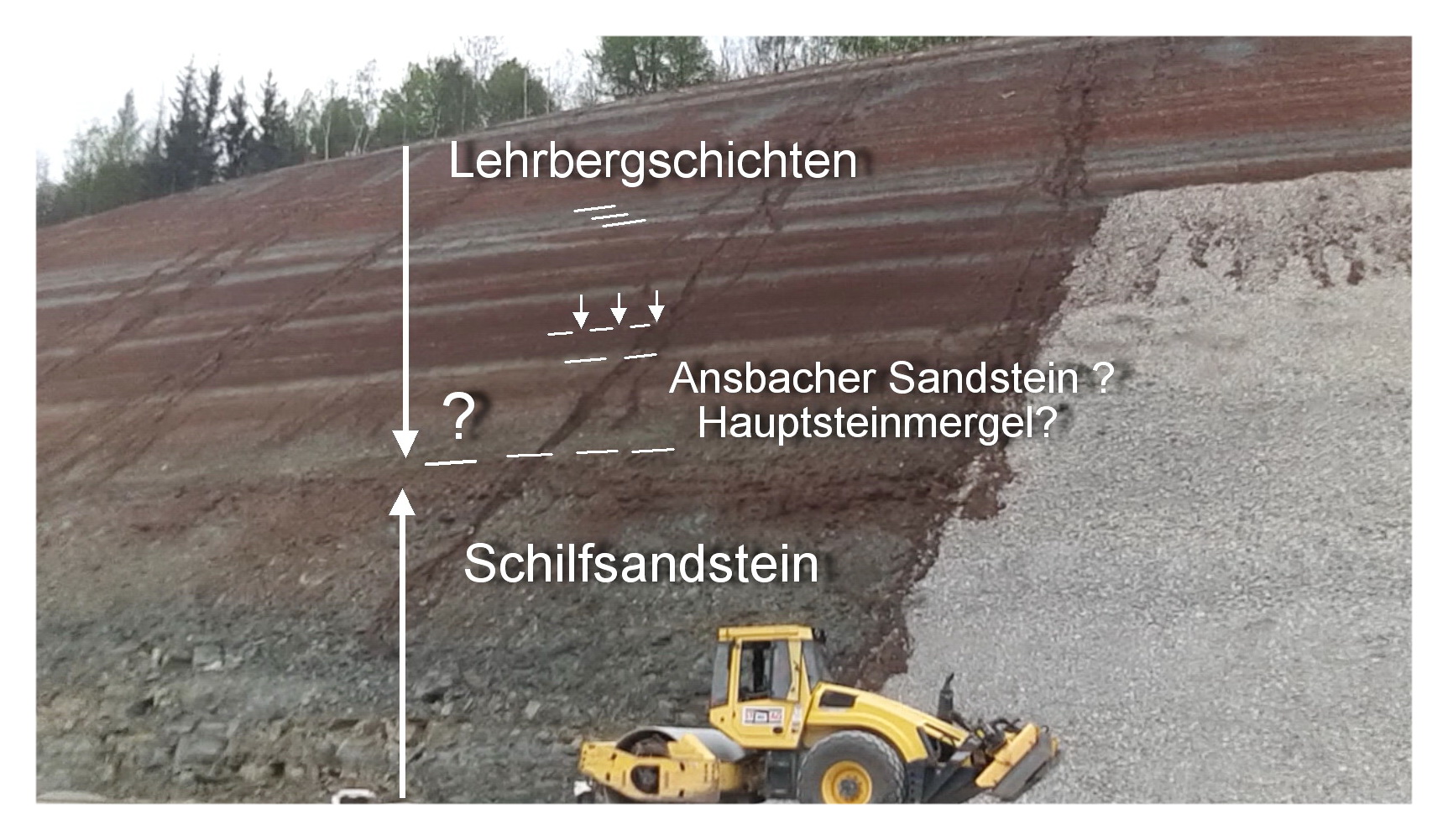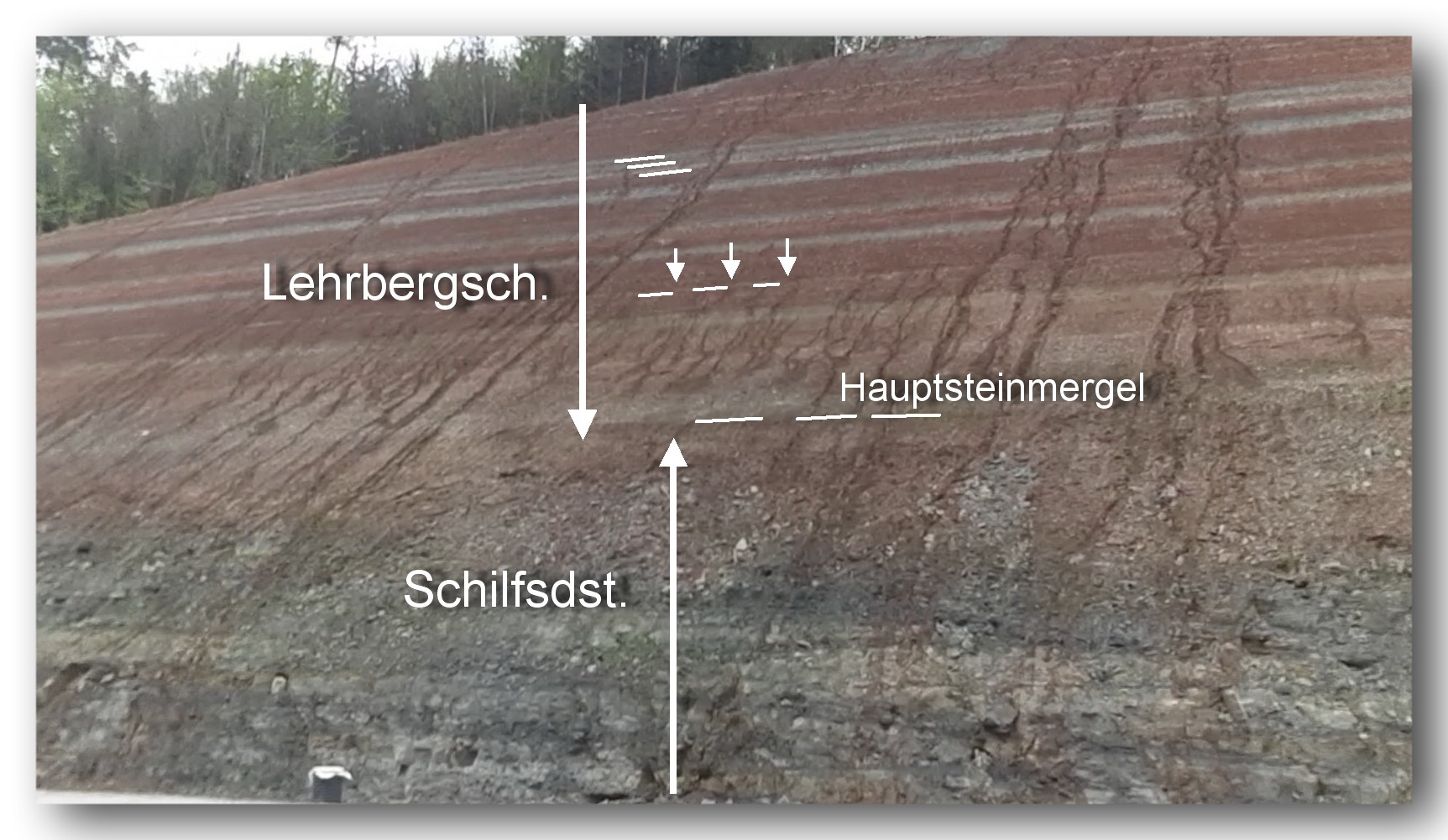 (1) Die dünnbankige des Fazies Schilfsandsteins zeigt bereichsweise eine deutliche Neigung, die von den darüber folgenden
