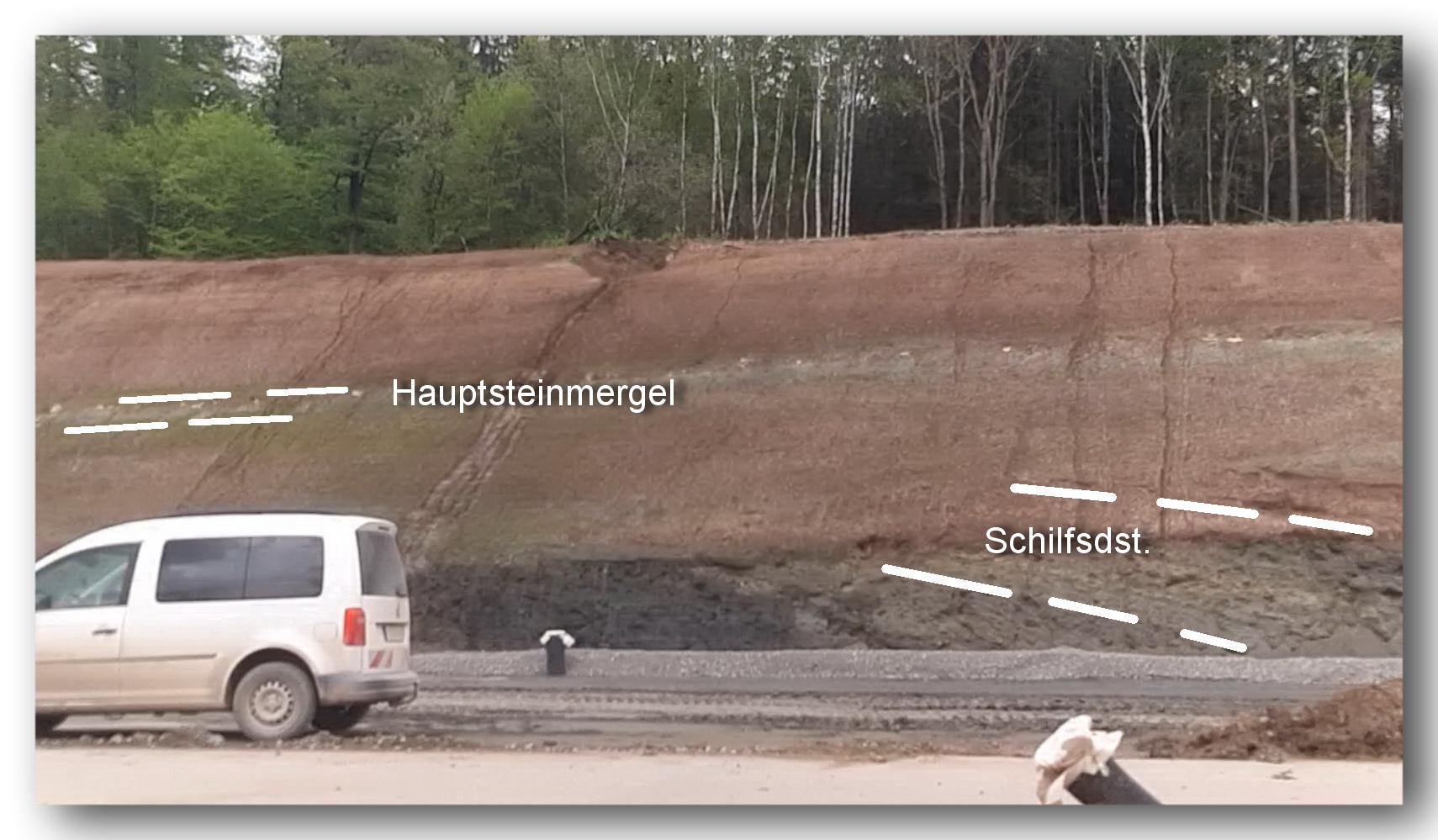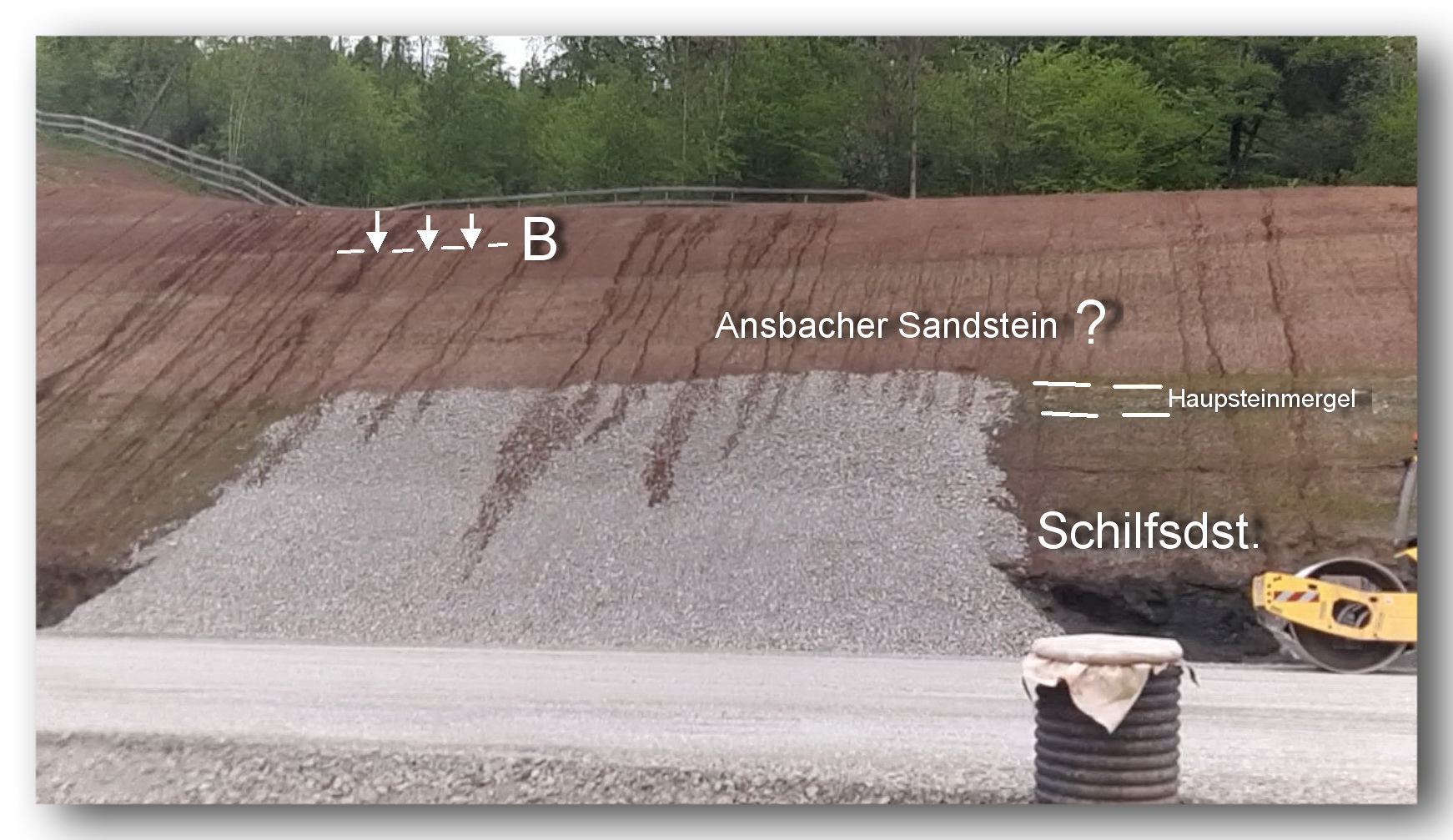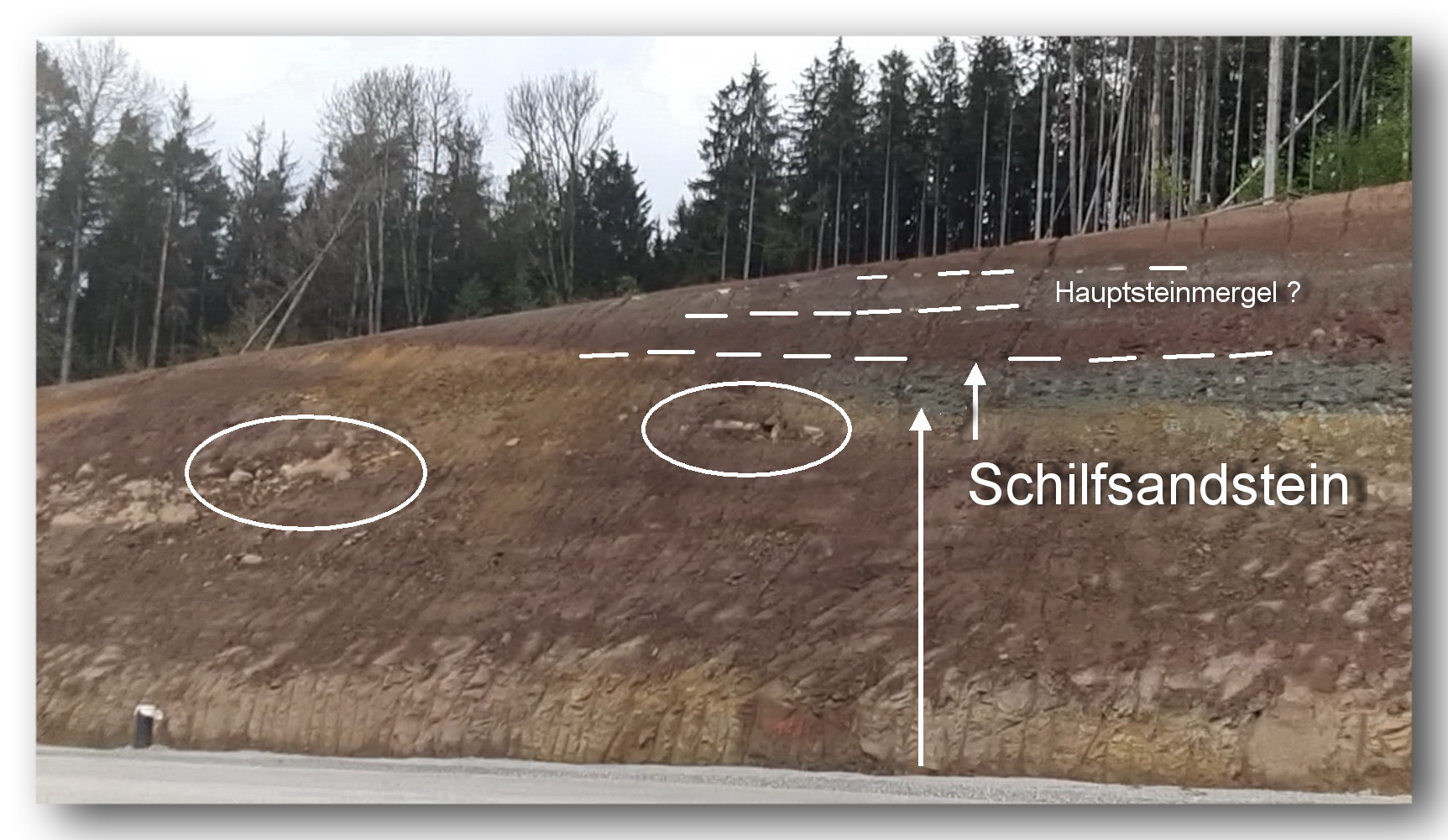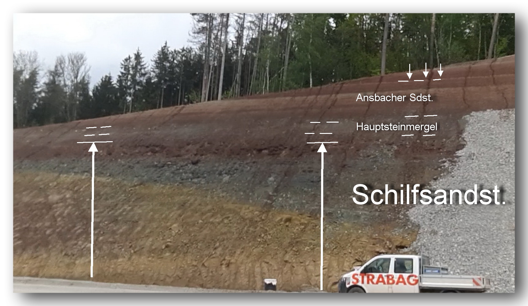 (1) Die dünnbankige des Fazies Schilfsandsteins zeigt bereichsweise eine deutliche Neigung, die von den darüber folgenden