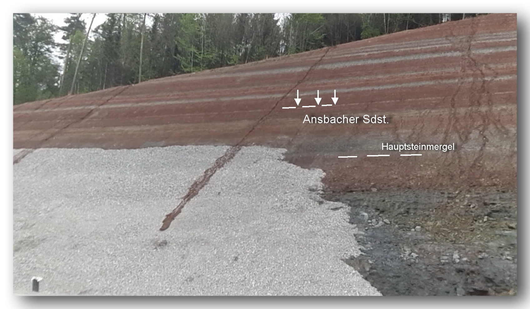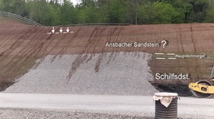 im Abstand von ca. 1-1,5 m der ähnlich mächtige Ansbacher Sandstein auftreten (siehe die Profilskizze unten). Diese beiden Horizonte sind allerdings nicht durchgehend entwickelt und