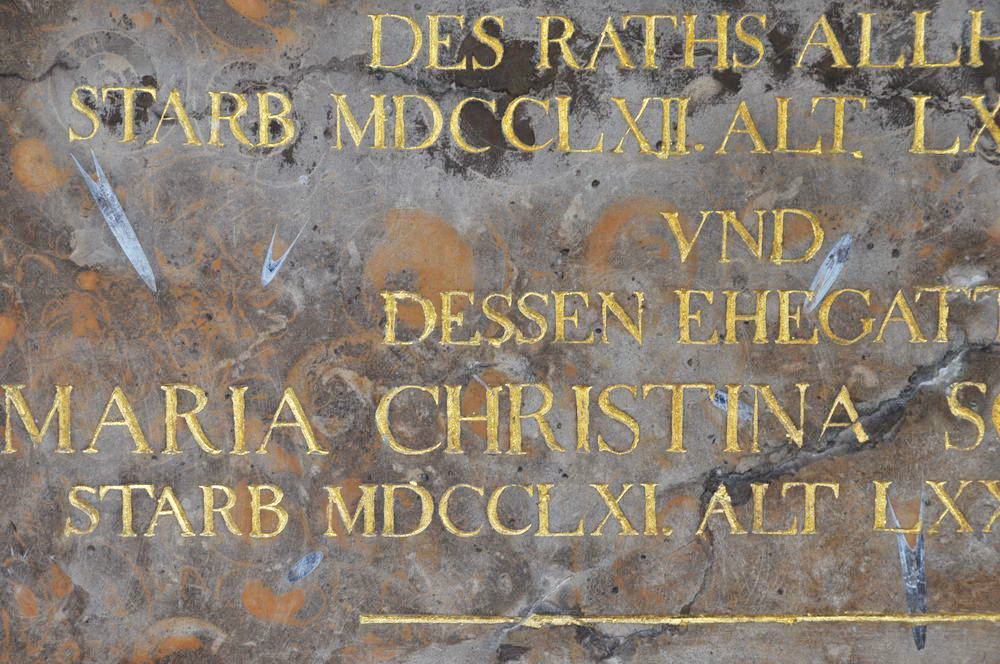 Das Gestein der Grabplatte von Johann Friedrich Bauder