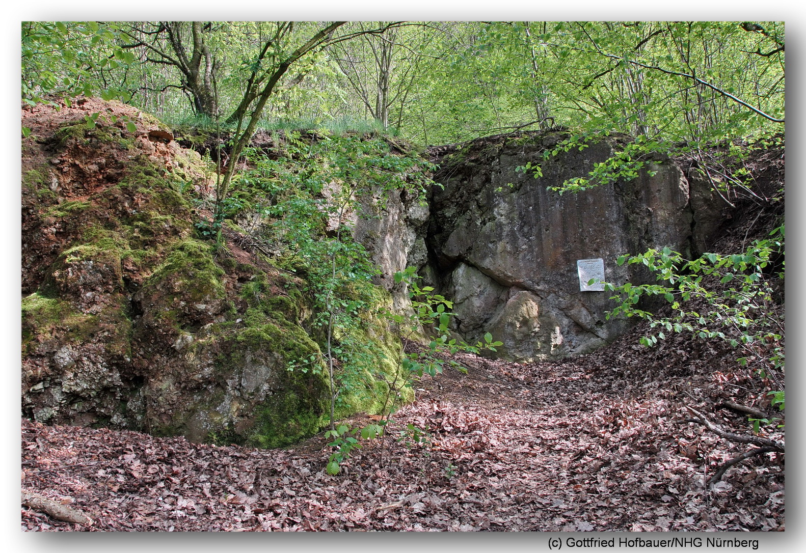 die Gesteinsoberflächen des lange stillgelegten Aufschlusses lassen nur wenig erkennen...